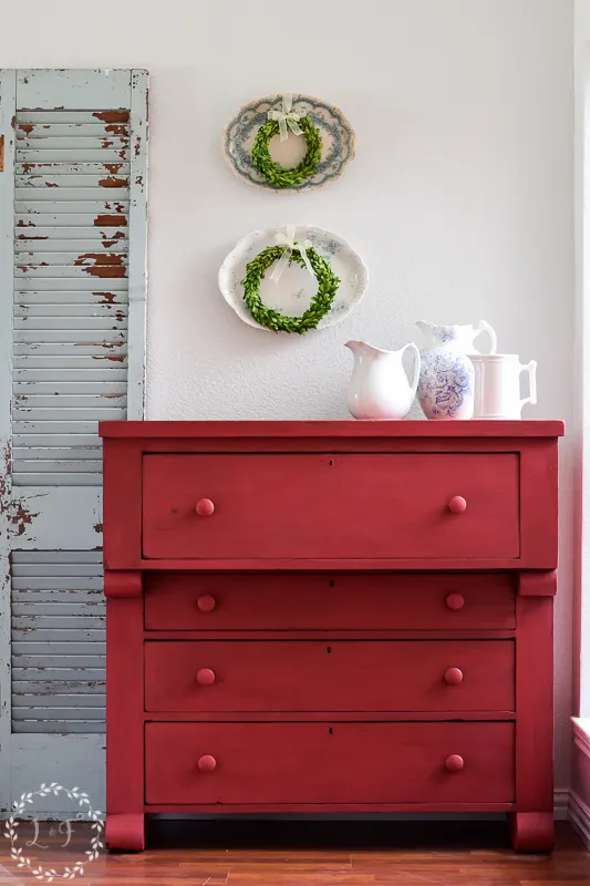 I asked my Facebook crew what color to paint it, and the vote was red! So I painted it in 3 coats of Tricycle from the MMS Milk Paint line.