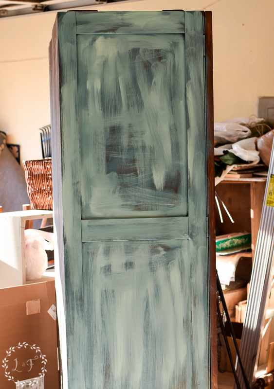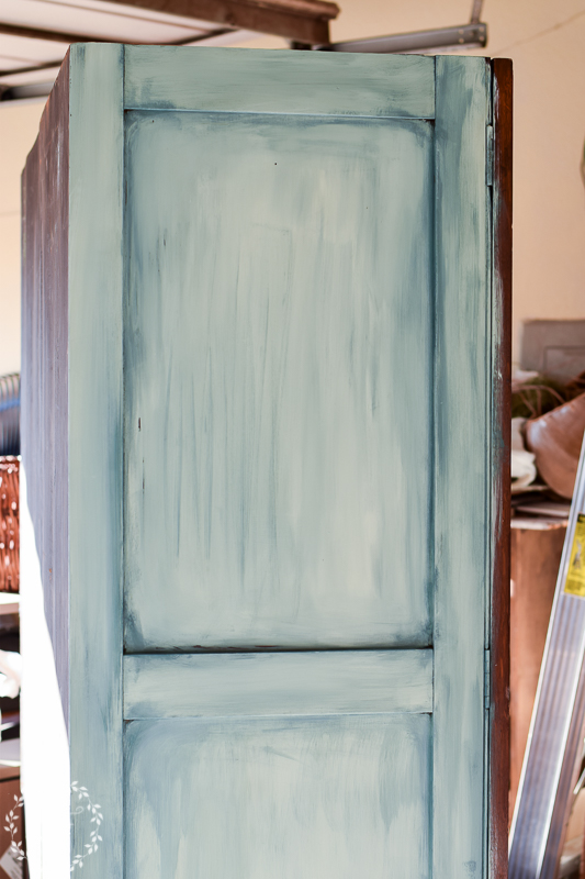 After giving the whole piece a light distressing–focusing mainly on edges and details–I used the Antiquing Glaze to warm up the finish and made sure to let it settle into the corners and recesses of the details.