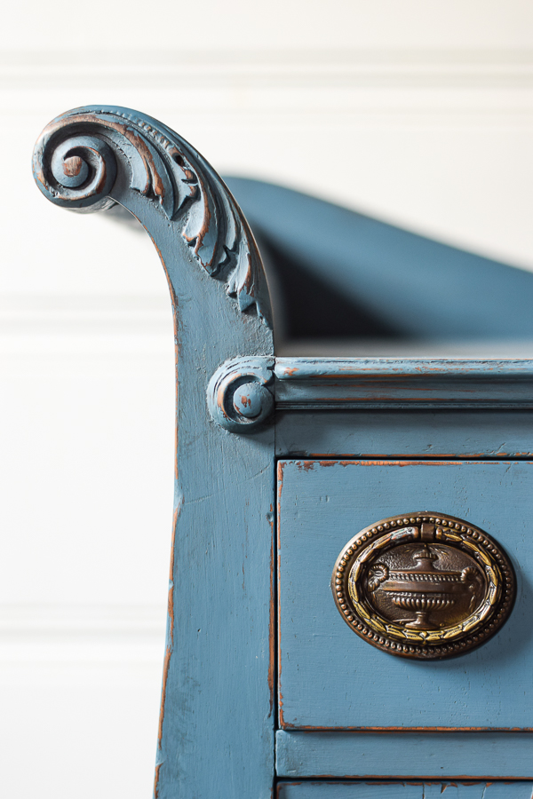 Once the final coat was dry, I distressed the details, focusing on the carvings.